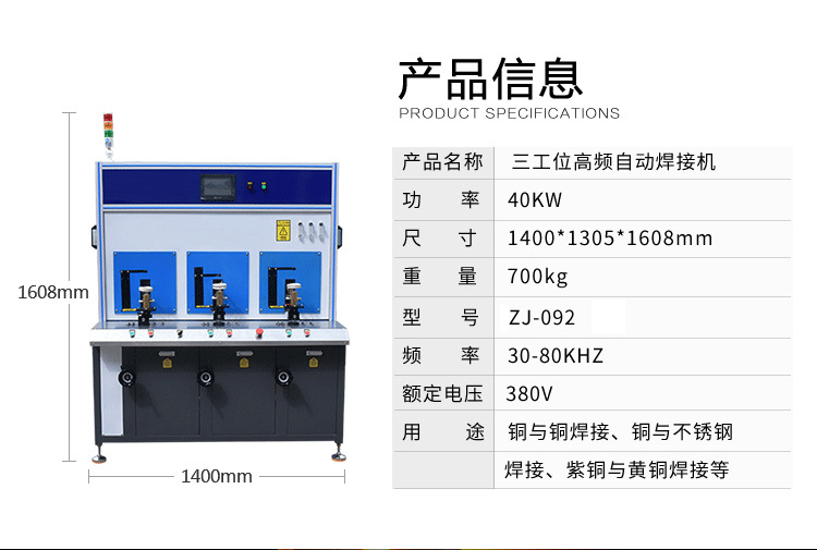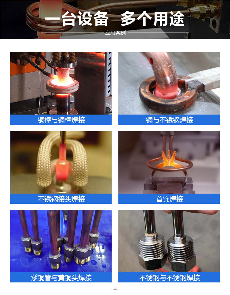 别名Q高频焊接机 型号QHT-QHJ 电压Q?80V 功率Q?5-250kw 用途:铜与铜焊接、铜与不锈钢 焊接、铜与黄铜焊接{。可Ҏ客户的需求,定向式研发铜焊接、洁兯业、汽车行业、A表行业设计的感半自动/全自动应加热钎焊讑֤?/br>